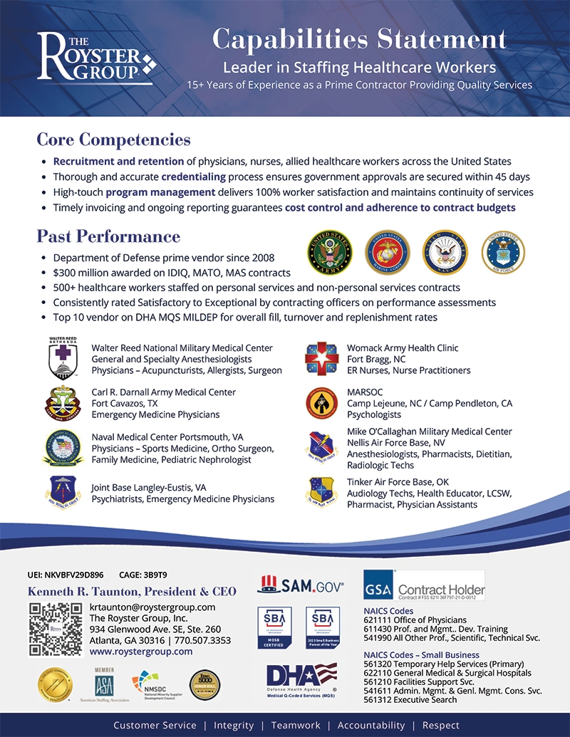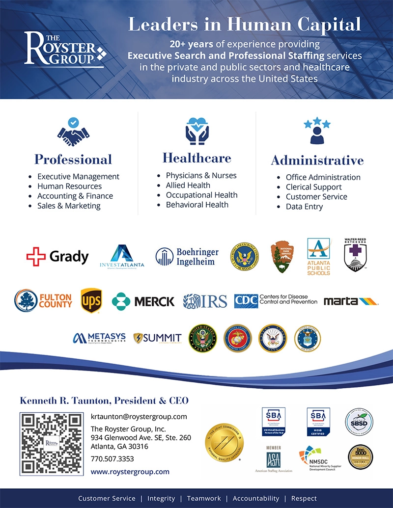 The Royster Group offers over 20 years of proven experience in providing reliable, compliant, and high-quality staffing solutions that empower organizations to excel across the public, private, and healthcare sectors. Our research-driven approach, combined with tailored workforce strategies, secures top talent with the exceptional skills and proven experience to drive everyday excellence.